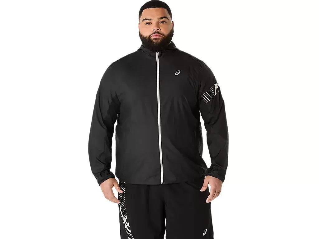 Our ICON JACKET is a light windbreaker that’s designed with a higher neck to help you keep running in breezy conditions. Additionally, the woven fabric is coated with a water-repellent finish to help shield light rain. It also features an adjustable hood for additional protection and side zippered pockets for storing running essentials.