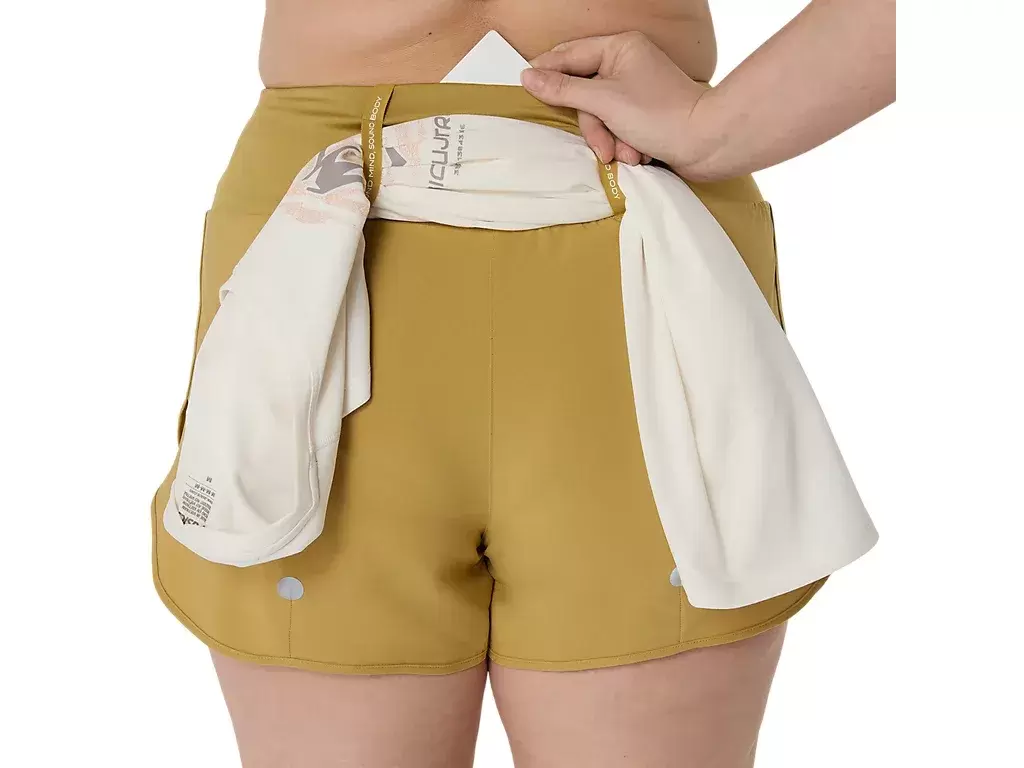 This short features multiple pockets, including: a center back pocket for phone storage and two front smaller pockets. Additionally, there is an elasticated loop system to stash a jacket, tee, towel, or any running essential.