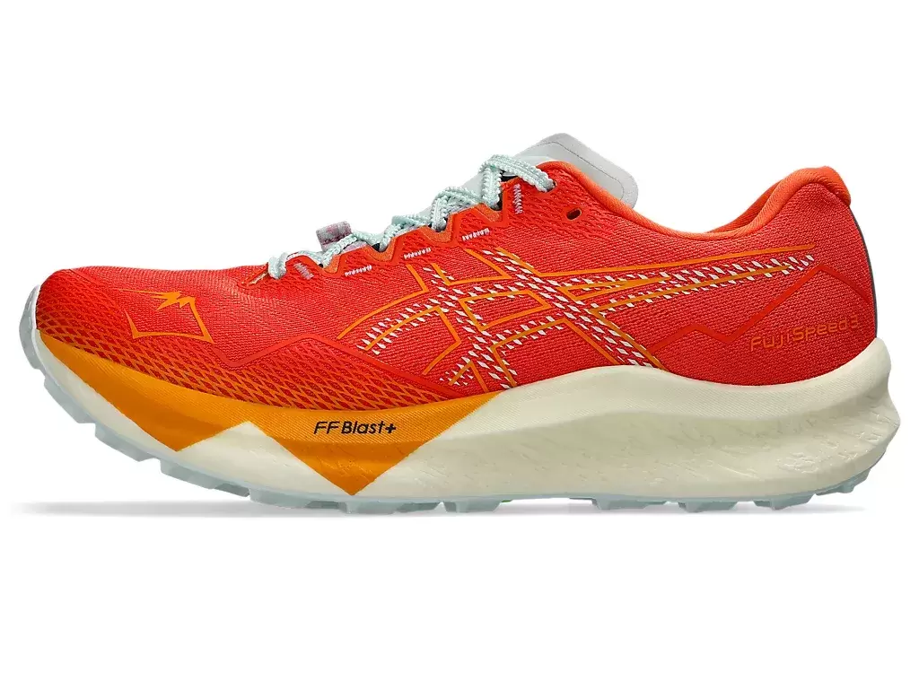 The FUJISPEED™ 3 shoe’s lace eyelet is engineered to give your feet a locked-in feel to go fast on the trails.