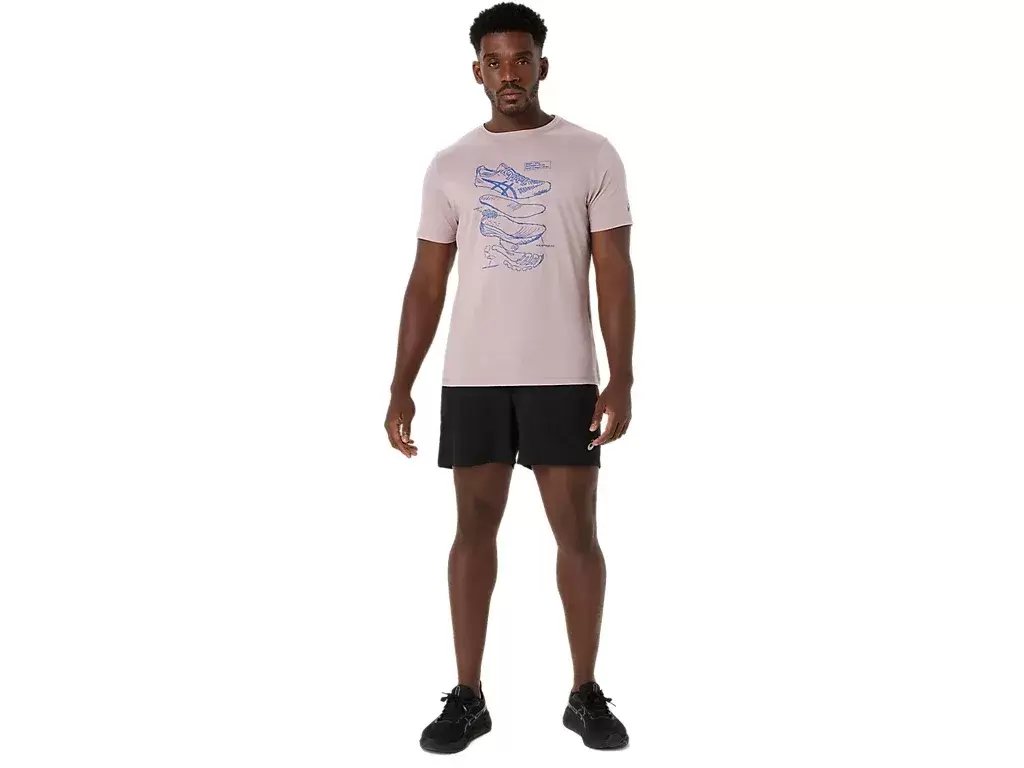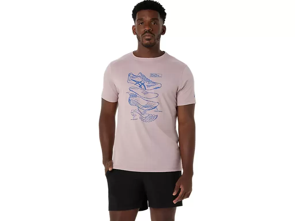 This comfortable knit short sleeve tee takes inspiration from performance ASICS running shoe sketches. It’s stamped with a front graphic that features the various components used to build our running shoes.