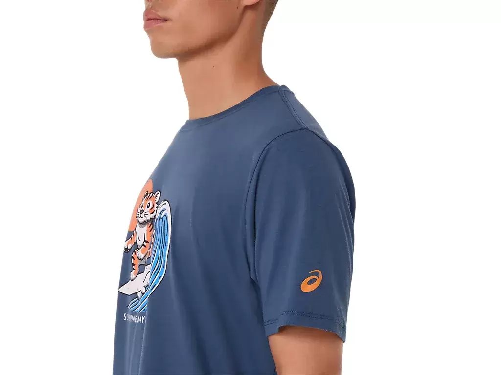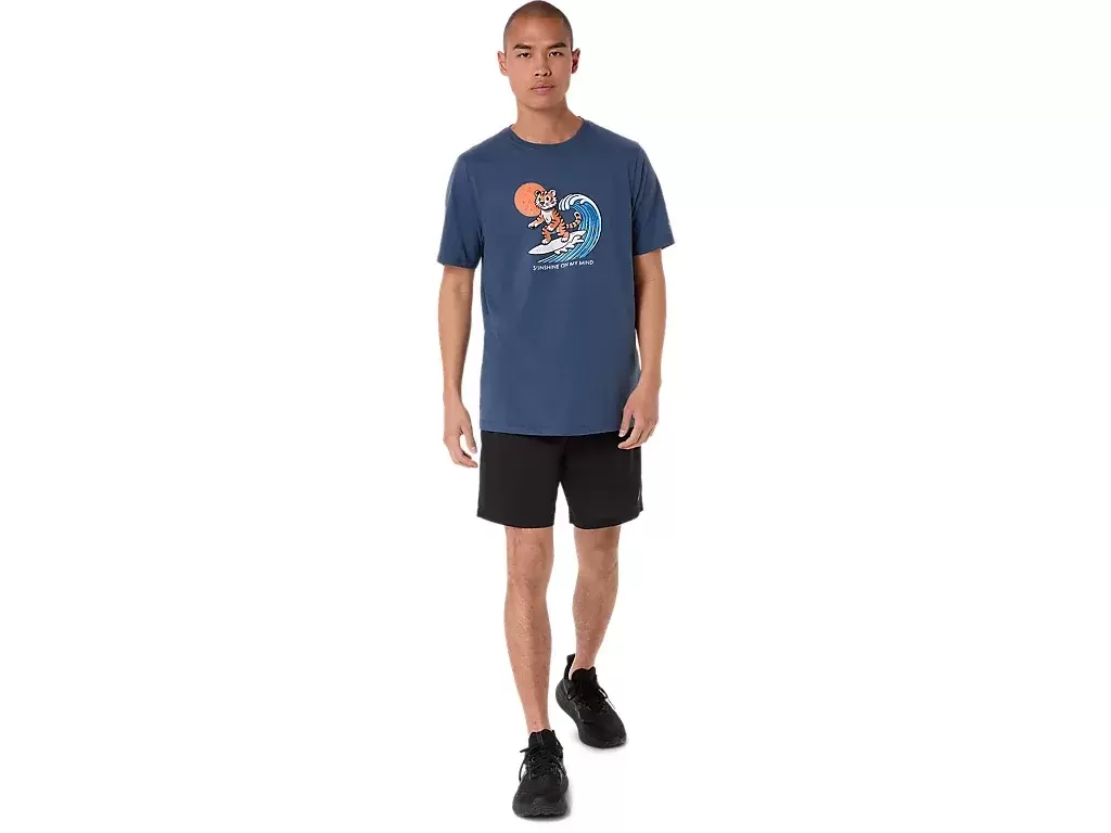 This comfortable knit short sleeve tee takes inspiration from the beach. The front graphic features a tiger surfing, while the phrase, “”SUNSHINE ON MY MIND”” appears underneath.