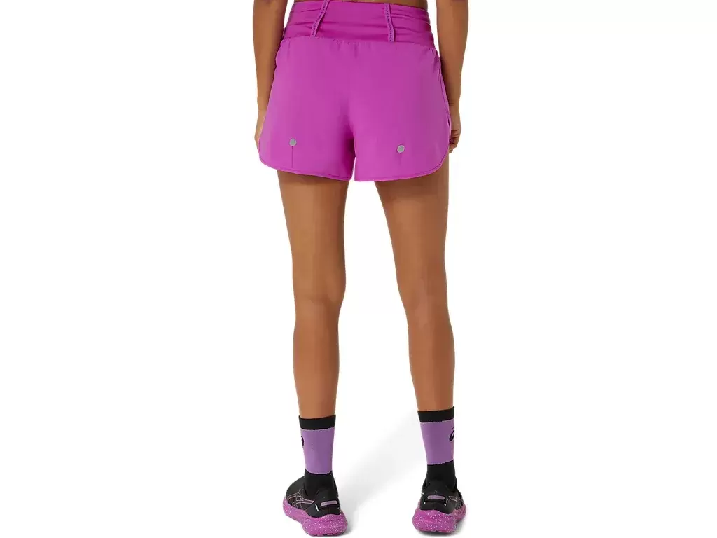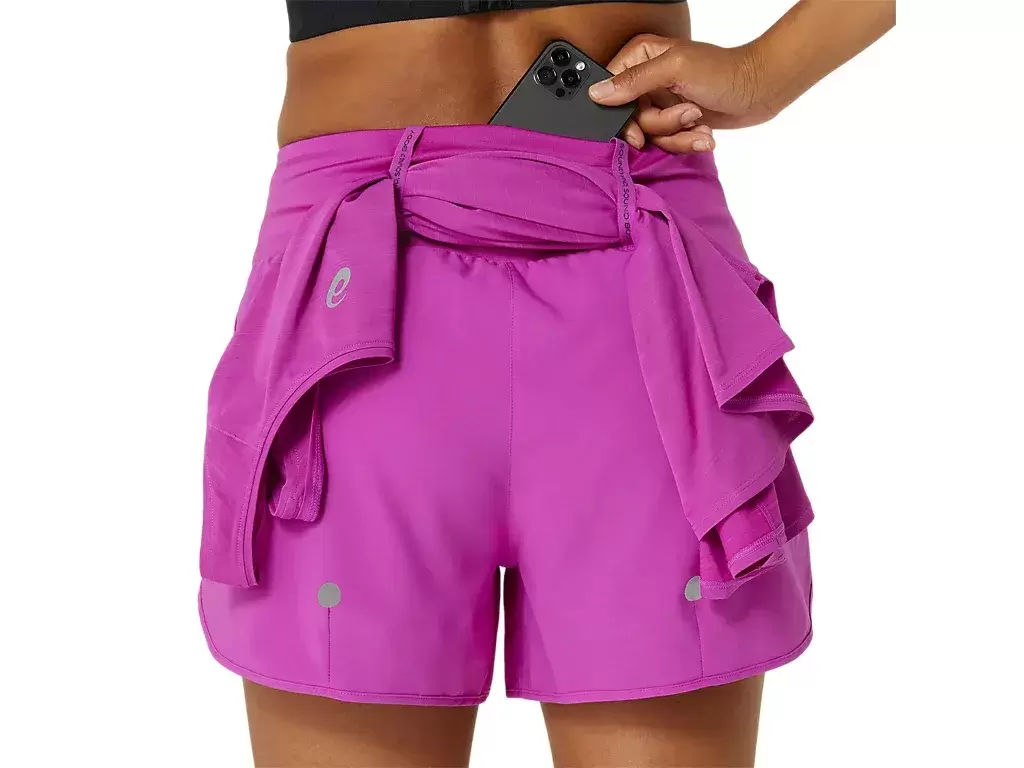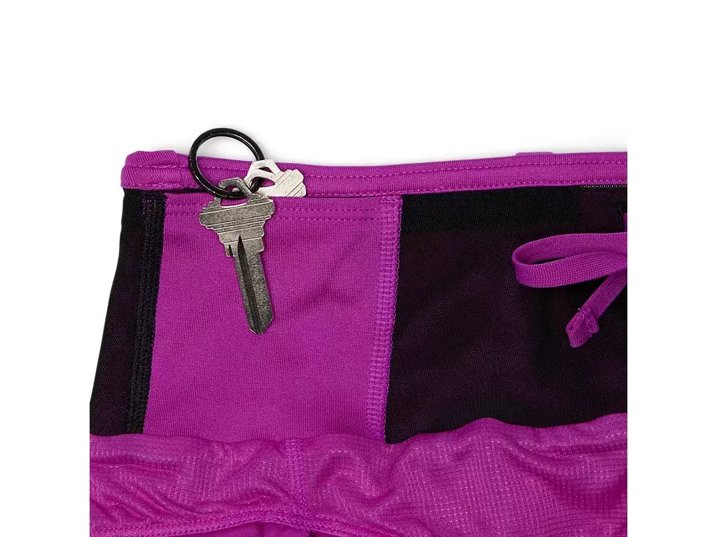 This short features multiple pockets, including: a center back pocket for phone storage and two front smaller pockets. Additionally, there is an elasticated loop system to stash a jacket, tee, towel, or any running essential.