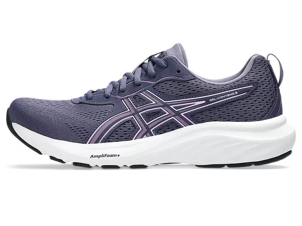 The GEL-CONTEND® 9 running shoe provides good cushioning, support, and durability.
